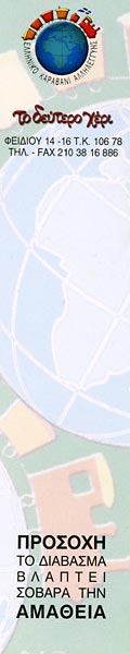 Το δεύτερο χέριΕΛΛΗΝΙΚΟ ΚΑΡΑΒΑΝΙ ΑΛΛΗΛΕΓΓΥΗΣCHARITY SHOPΦειδίου 14 -16 τ.κ 106 78 Αθήνα τηλ/φαξ.2103816886 Το δεύτερο χέρι είναι ενα ξεχωριστό κατάστημα. Ένα κατάστημα που σαν ιδέα υπάρχει πολλά χρόνια στο εξωτερικό αλλά στην Ελλάδα το έχουμε δει μόνο με τη μορφή διάφορων παζαριών που οργανώνονται κατα καιρούς για φιλανθρωπικούς σκοπούς. Το ελληνικό καραβάνι αλληλεγγύης που τόσο έχει βοηθήσει και βοηθάει με το έργο του τα ορφανά παιδιά, άνοιξε το δεύτερο χέρι, ένα charity shop όπου μπορείτε να χαρίσετε αντικείμενα που δεν τα χρειάζεστε πια, αλλά μπορούν να πουληθούν σε χαμηλές τιμές για τις ανάγκες του καραβανιού. Έτσι στο δεύτερο χέρι μπορείτε να χαρίσετε ή να αγοράσετε, από βιβλία μέχρι είδη για το σπίτι, διακοσμητικά, κοσμήματα, παιγνίδια. Ειδικά για τις ανάγκες σας σε δώρα, το δεύτερο χέρι αποτελεί ιδανική λύση με την ποικιλία των αντικειμένων που διαθέτει, αλλά και με τις χαμηλές τιμές του. Χώρια που τα χρήματα σας θα πιάσουν σίγουρα τόπο. Το δεύτερο χέρι είναι στο κέντρο της Αθήνας στην Φειδίου 14-16 μέσα στη στοά δίπλα στην εφημερίδα απογευματινή. Οι υπεύθυνοι του καταστήματος (εθελοντές του καραβανιού) θα σας βοηθήσουν να βρείτε κάτι που να σας ταιριάζει από την μεγάλη ποικιλία που διαθέτει το δεύτερο χέρι. ΤΟ ΔΕΥΤΕΡΟ ΧΕΡΙ |