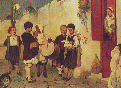 πήρε σβάρνα δρόμους και καλντερίμια! Το μεταλλικό τριγωνάκι στα γαντοφορεμένα χέρια, κάποτε και το μικρό χάρτινο καράβι στην αγκαλιά, αυτιά και μύτες κατακόκκινα, ξυλιασμένα από την παγωνιά και... Χριστού την θείαν γέννησιν Μέσα σε μια βδομάδα καινούργια έξοδος με την ίδια ή άλλη παρέα —σαν μαλώναμε στην μοιρασιά με την προηγούμενη— και... Αρχιμηνιά κι αρχιχρονιά Σε πέντε μέρες, πρωΐ της πρωτάγιασης (παραμονή Θεοφανείων), δώστου ξανά–μανά από την αρχή... Σήμερα τα φώτα και ο φωτισμός Το τι σαρδάμ γίνονταν και το τι ανακάτωμα