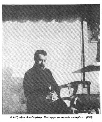 κυρ΄ Αλέξανδρου Παπαδιαμάντη. Η φωτογράφιση του Αλέξανδρου Παπαδιαμάντη από τον Νιρβάνα (www.fotoart.gr) Τώρα... Αλλά ας ακούσουμε τον ίδιο τον Αλέξανδρο Παπαδιαμάντη έτσι όπως τον ακούγαμε στα παιδικά διαβάσματα να ψιθυρίζει δίπλα στο τζάκι τις πονεμένες ιστορίες των φτωχών και καταφρονεμένων κι ύστερα να ψάλλει γλυκά το «Η Παρθένος σήμερον τον υπερούσιον τίκτει...» κανοναρχώντας τον ρυθμό με το πόδι στα πάτωμα: «...τη Κυριακή μετά την Χριστού γέννησιν, ετελούντο εν πάση χαρά καί σεμνότητι